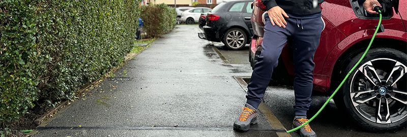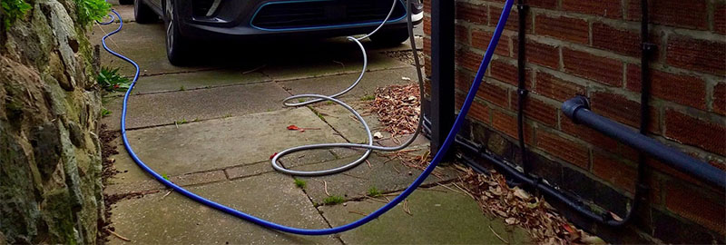 Some local authorities allow charging cables to run across a public footpath, so long as it is removed as soon as possible after a charging session has finished. Other councils advise against it altogether, so it's worth checking where you stand in your local area.