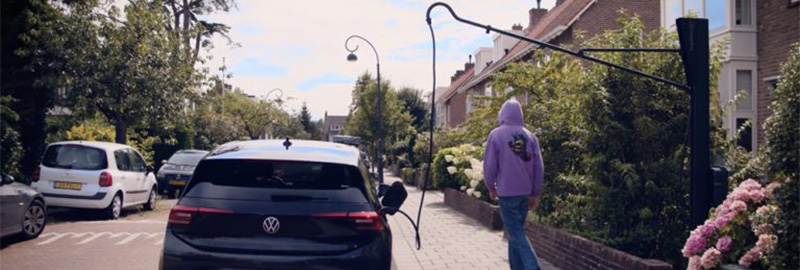 Charging arms usually sit in a front garden and can reach up and over pavements with a safe and secure solution to charge an EV.
